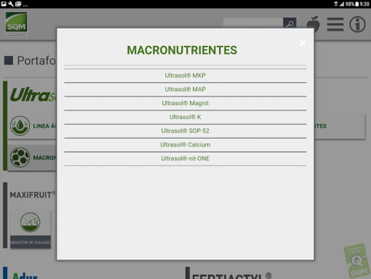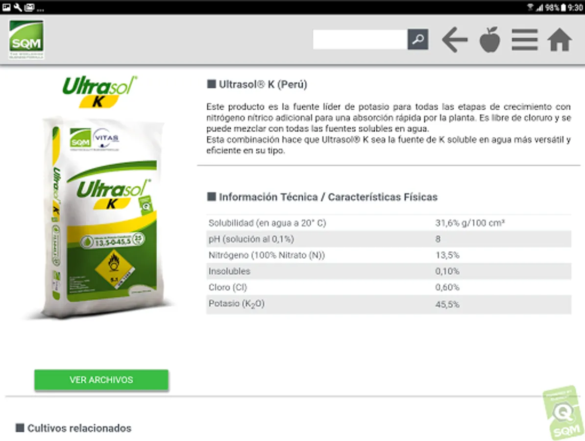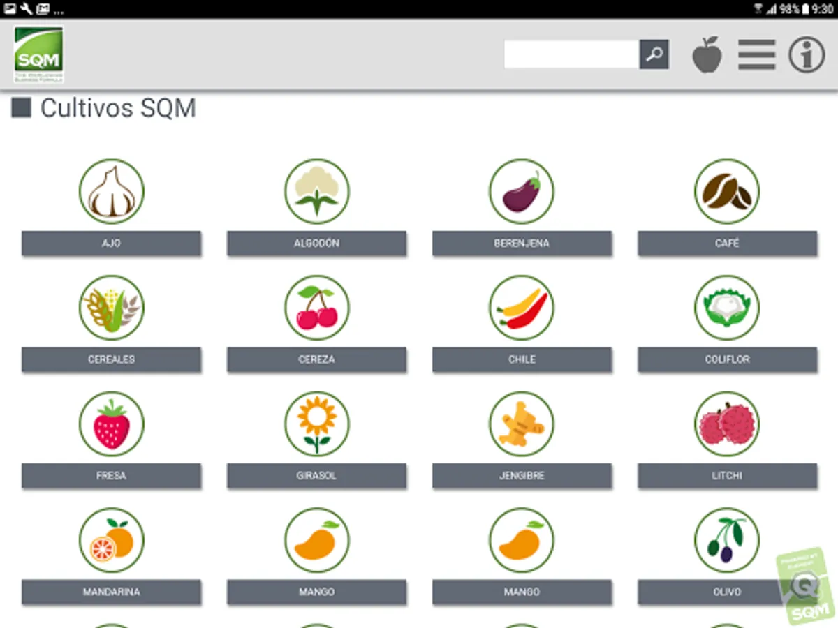 You can also find crop information; What are their phenological stages, reference images of nutritional disorders or obtain the fertigation programs recommended by SQM for each crop.