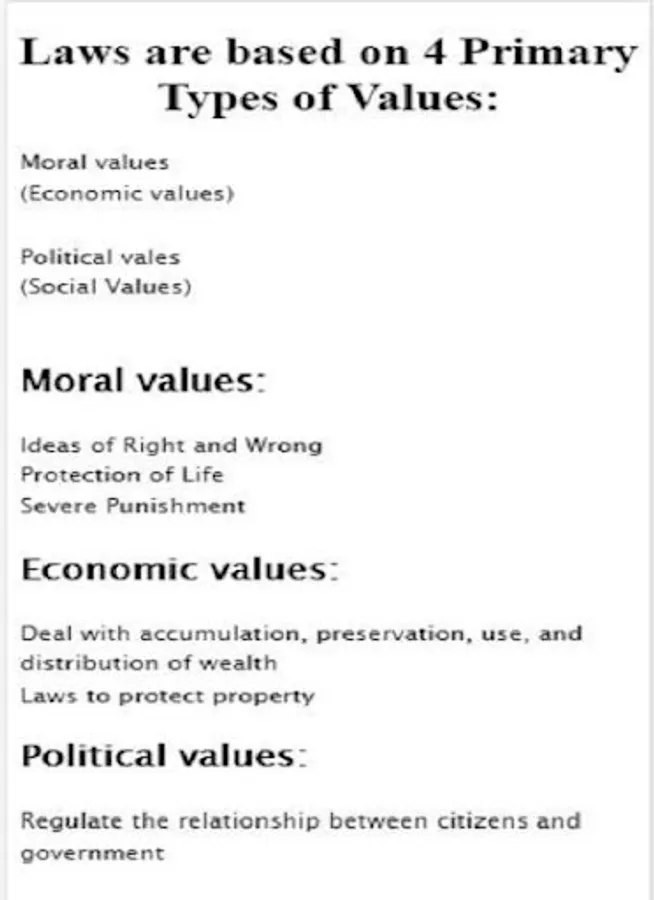 Laws are based on 4 Primary Types of Values