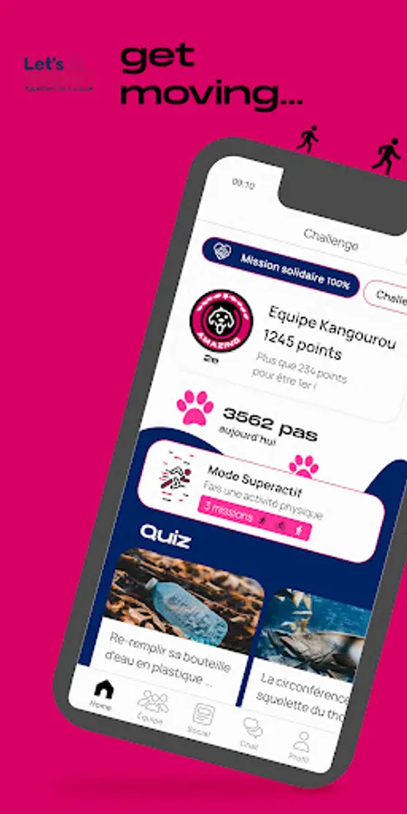 Let's move is a team solidarity sports challenge among colleagues to benefit charitable causes. There's only one golden rule… and that's to have fun! The Let's Move spirit means giving your best for and with other people.