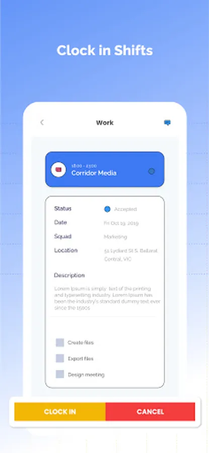 MySquadly integrates with Squadly Bizz app which helps organises help their workforce. You can set your availability in MySquadly app and get roster-ed in between those times. You can accept shifts, cancel shifts, look your roster and clock-in & clock-off from your MySquadly app.
