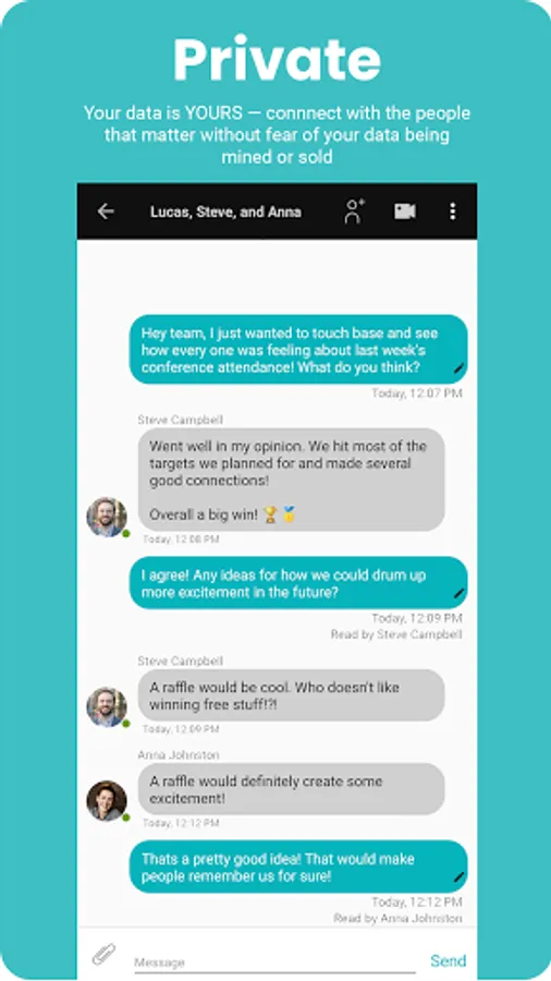 SquadPod does not sell your data. Have private conversations without fear of data mining or ads that chase you around the internet based on your conversations.