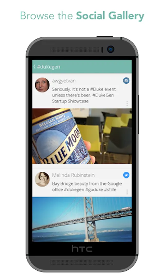 - Live Social Gallery: curated photos and videos from Facebook, Twitter, and Instagram are available to view before, during and after the event using your event specific hashtag