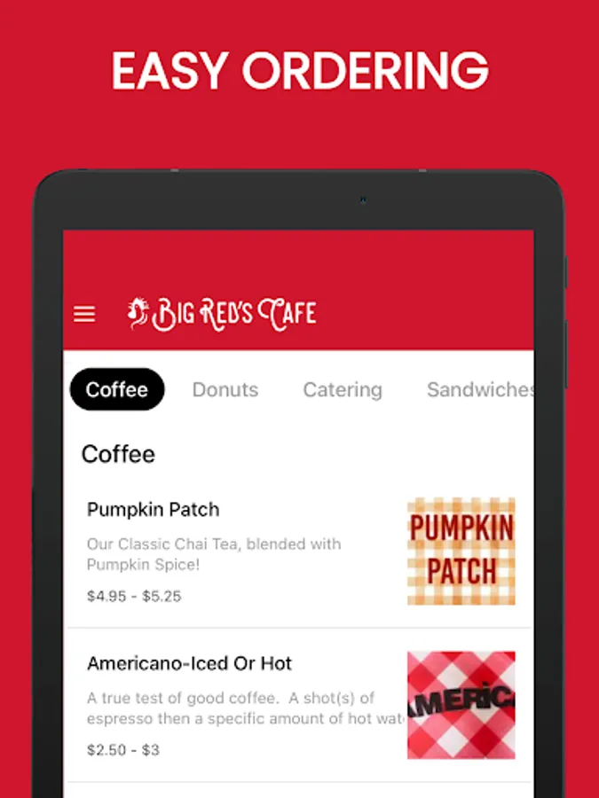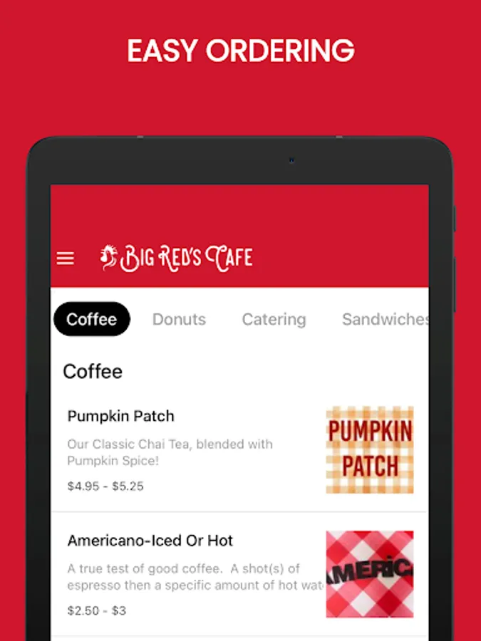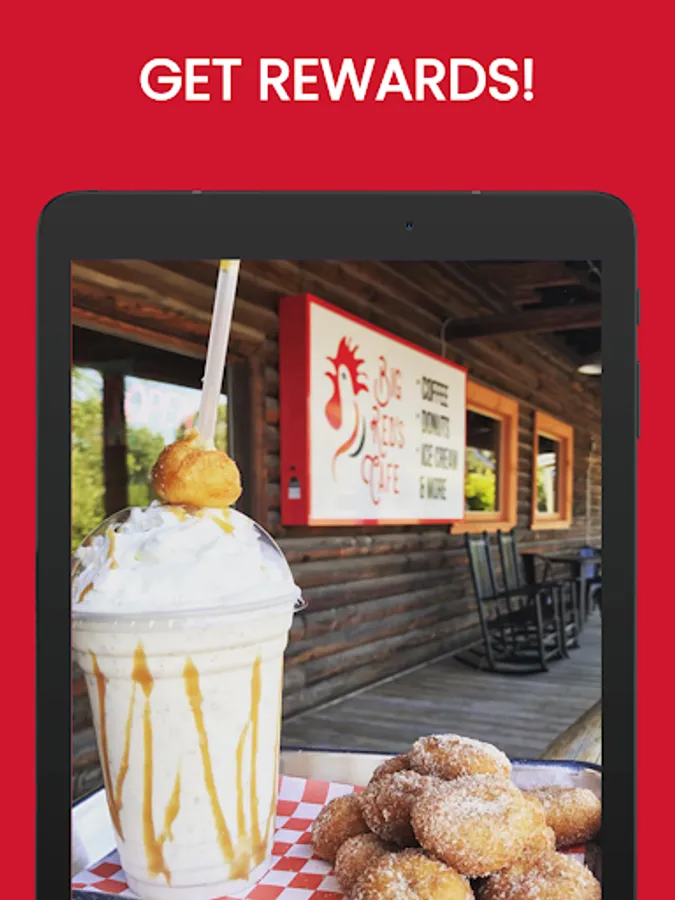 The Big Red's Cafe app is a convenient way to pay in store or skip the line and order ahead. Rewards are built right in, so you'll collect Stars and start earning free drinks and food with every purchase.