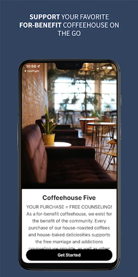 Support your favorite FOR-BENEFIT coffeehouse on the go with the Coffeehouse Five app. Skip the line and order ahead. Rewards are built right in, so you'll collect Stars and start earning free drinks and food with every purchase. Track your Stars and redeem Rewards for a free food or drink of your choosing. Receive custom offers as a Coffeehouse Five Rewards™ member. And your past orders are saved so you can reorder with a single click.