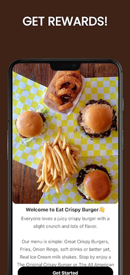 The Eat Crispy Burger app is a convenient way to pay in store or skip the line and order ahead. Rewards are built right in, so you'll collect Stars and start earning free drinks and food with every purchase.