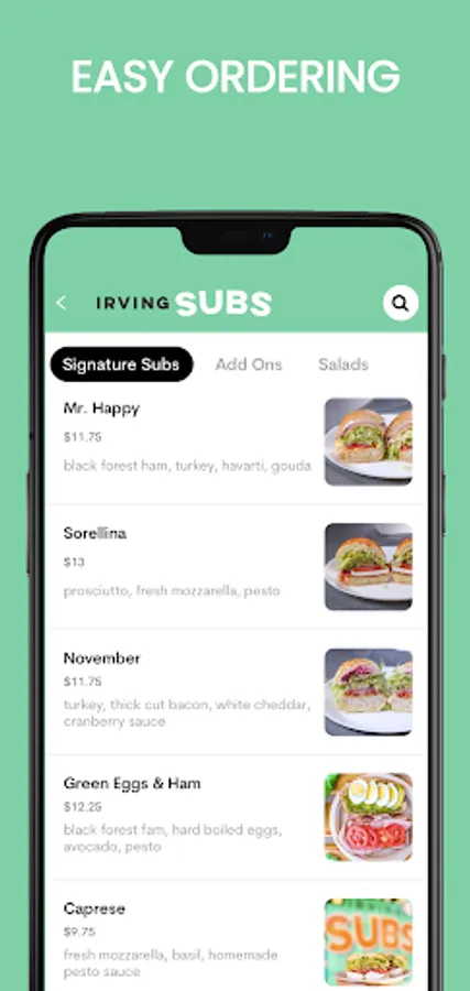 The Irving Subs app is a convenient way to pay in store or skip the line and order ahead. Rewards are built right in, so you'll collect Stars and start earning free drinks and food with every purchase.