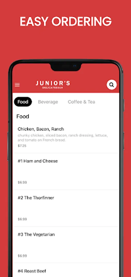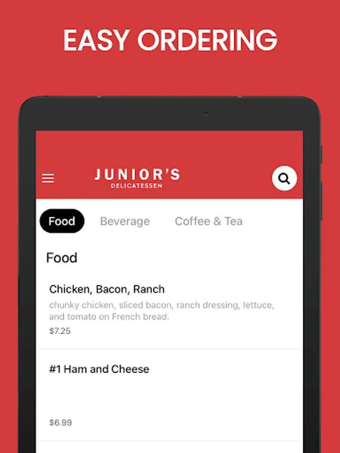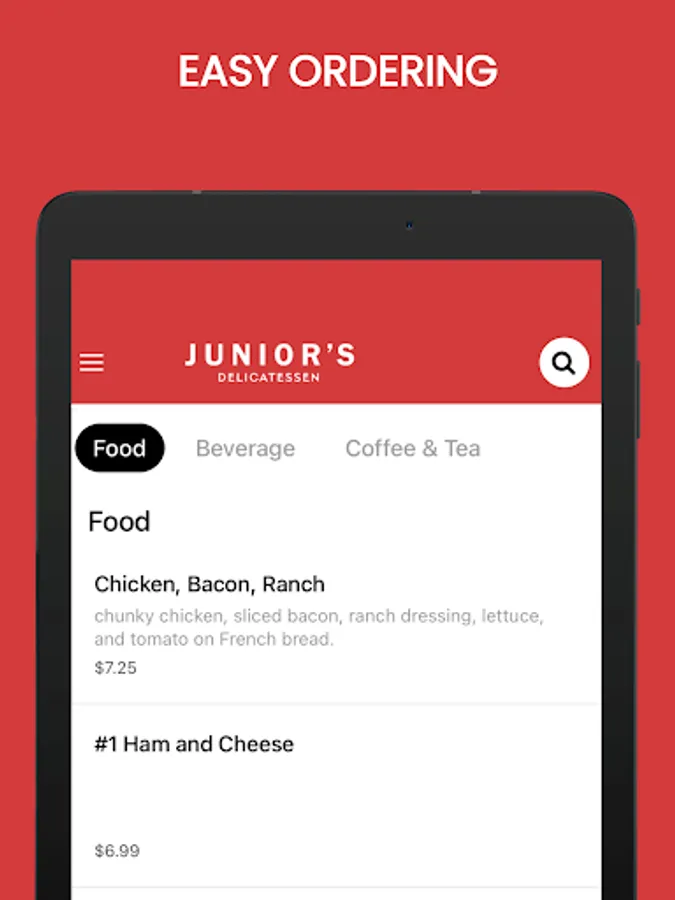The Junior's Delicatessen app is a convenient way to pay in store or skip the line and order ahead. Rewards are built right in, so you'll collect Stars and start earning free drinks and food with every purchase.
