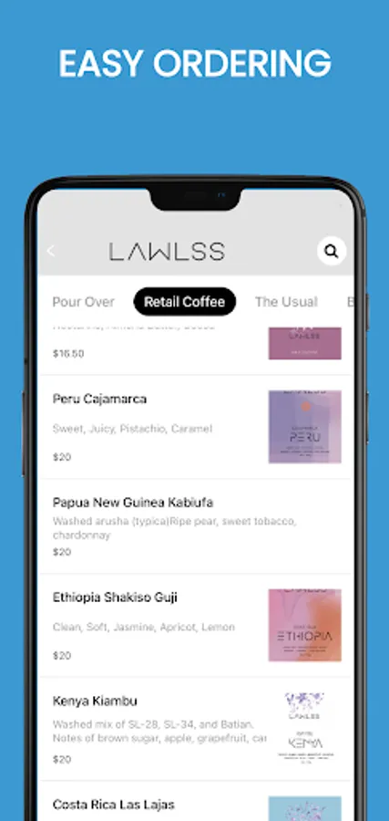Save time and earn Rewards when you pay with the Lawlss Coffee app at our stores.