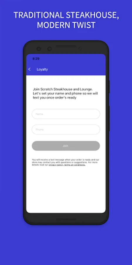 Save time and earn Rewards when you pay with the Scratch Steakhouse and Lounge app at our stores.