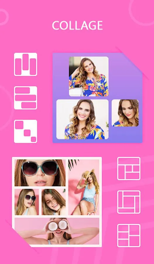 ♦ Photo Collage Maker Using Grid Maker Create the photo frame using photo collage maker, The grid maker features provide different shapes to create photo collage. Thousands of different style of photo grid shapes are available to select up to 9 photos from the gallery and create the photo collage pic. Photo collage maker allow to add background, patterns and frames along with created photo collage frame.
