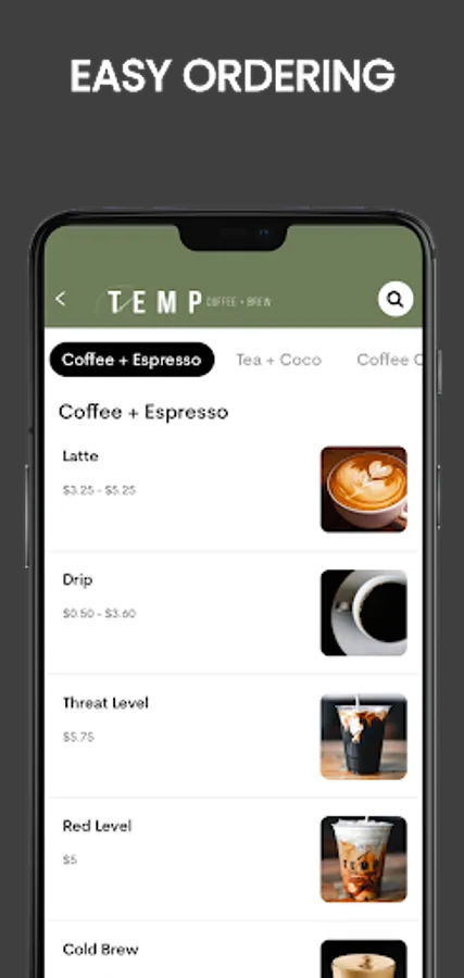 The Temp Coffee and Brew app is a convenient way to pay in store or skip the line and order ahead. Rewards are built right in, so you'll collect Stars and start earning free drinks and food with every purchase.