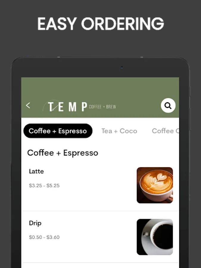 Save time and earn Rewards when you pay with the Temp Coffee and Brew app at our stores.