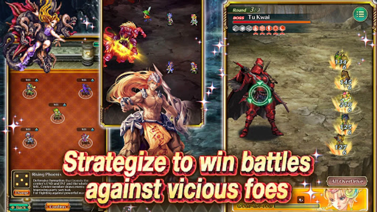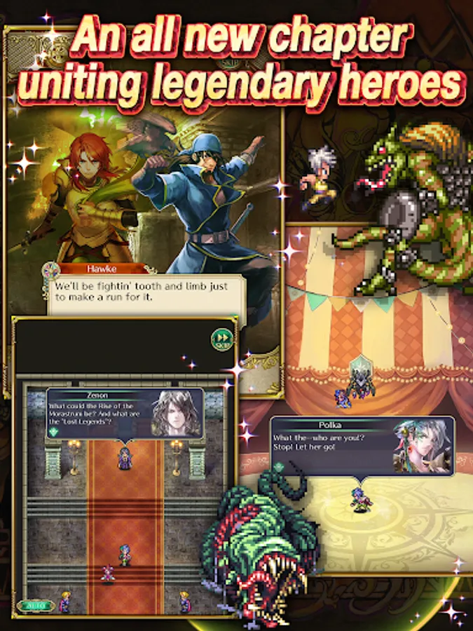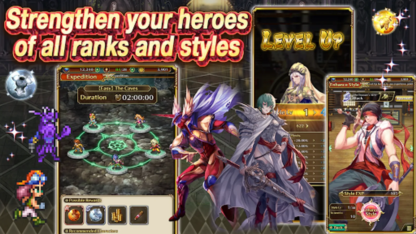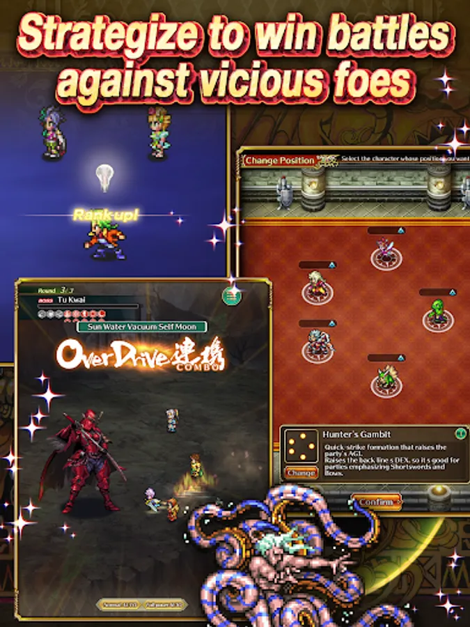 See story and combat come to life in stunning, meticulously crafted pixel art! Lay your eyes on lavish character art from series illustrator Tomomi Kobayashi and a bevy of guest artists!