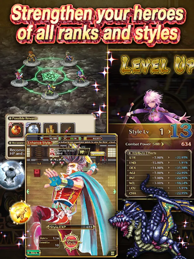 Invest as much time and strategy as you want! The game’s combat system allows for auto-play when you want to casually play, and manual play when you want to go all in. The more you put in the game, the greater the rewards!