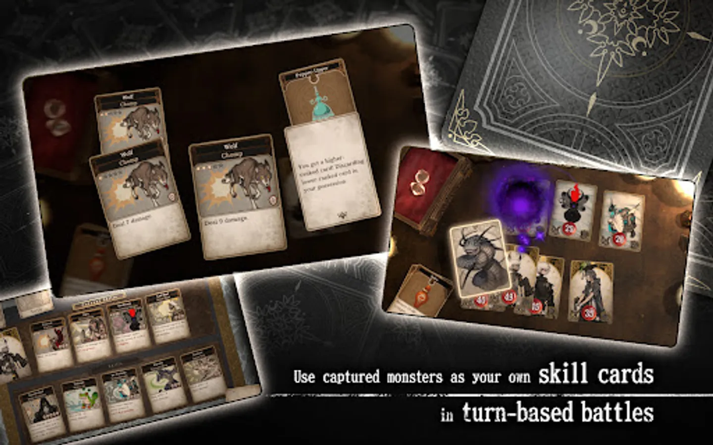 In Voice of Cards: The Beasts of Burden, you can seal defeated monsters in cards and summon them during battle as monster cards. Monster cards are ranked up to 5 stars, and as you progress through the story and move to new areas, you’ll be able to get higher-ranked cards.