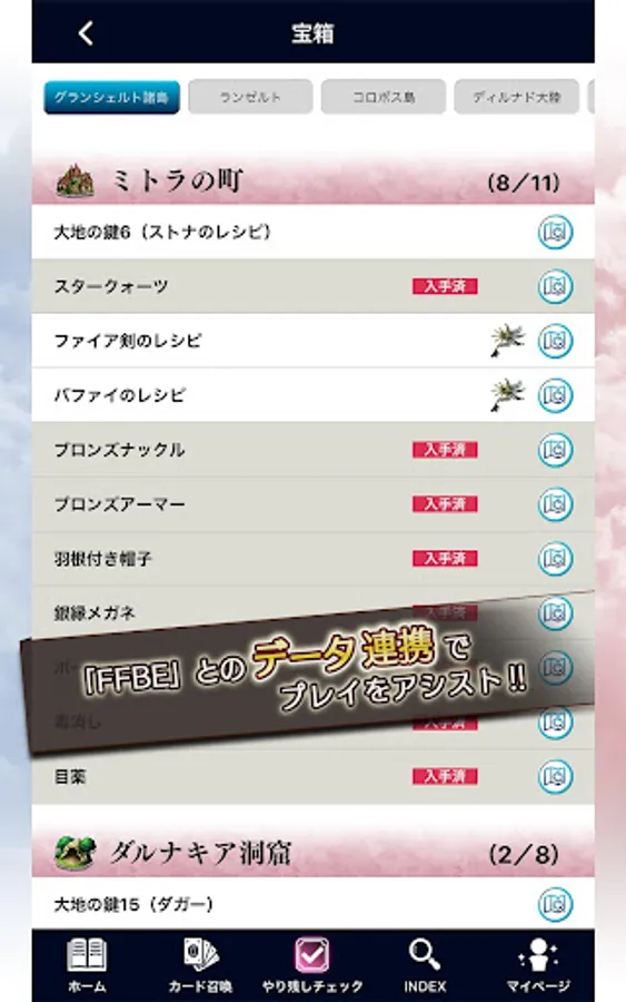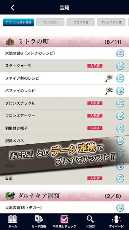 ◎ "Unfinished check" function that allows you to check the opening status of treasure chests and the achievement status of missions and quests.