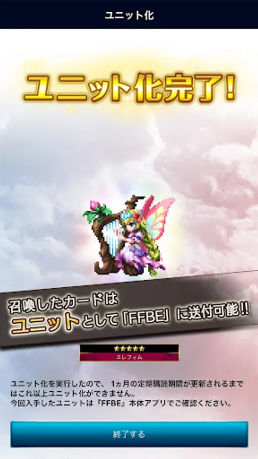 You can send one unit or fragment to the main part of "FFBE" for each one-month subscription period.