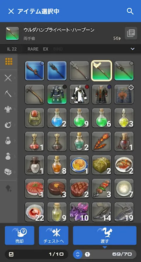 You can perform operations such as moving items and selling/disposing of unnecessary items.