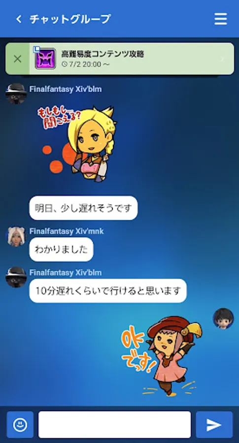 You can coordinate schedules with friends, free companies, and linkshell members.