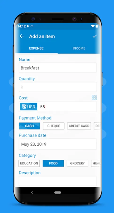 Tracking your consumption with Expense Tracker is very easy. For each item, you follow two steps: