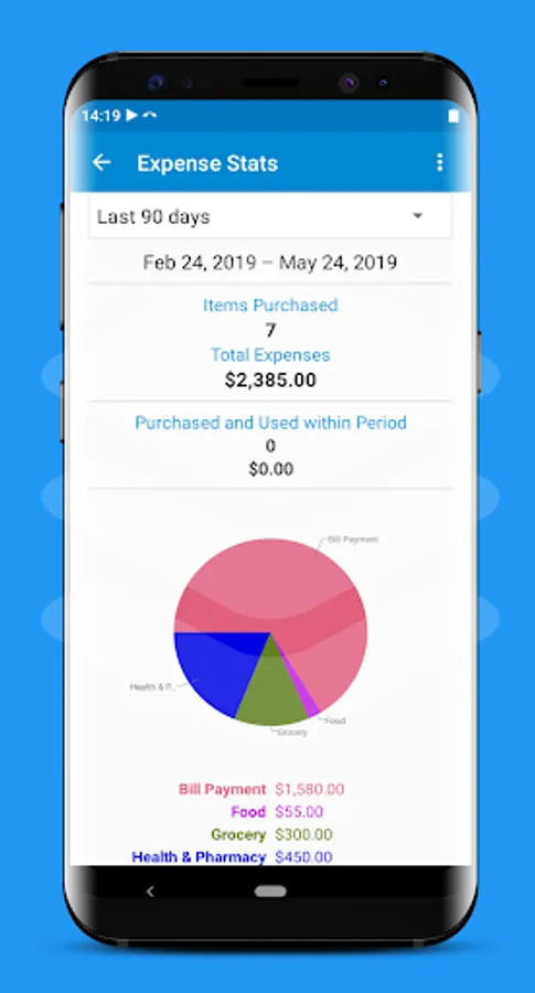 - Manage your Trip Expenses (or Travel/Holidays Expenses), Bill payments, Education Expense, Grocery Expense, Health or Pharmacy Expense, Rent, Auto Expense, Home Expenses, Office Expenses, Food Expenses, Shopping Expenses