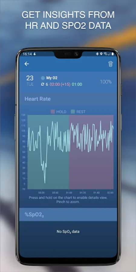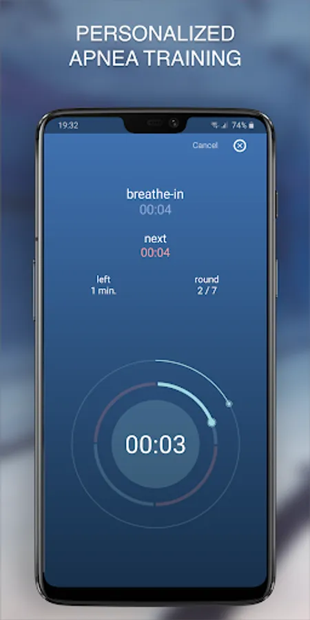 Get the notification to start your apnea training. In the application, you can set a reminder for the day and the time, which will send a notification that it is time to go through a training session.