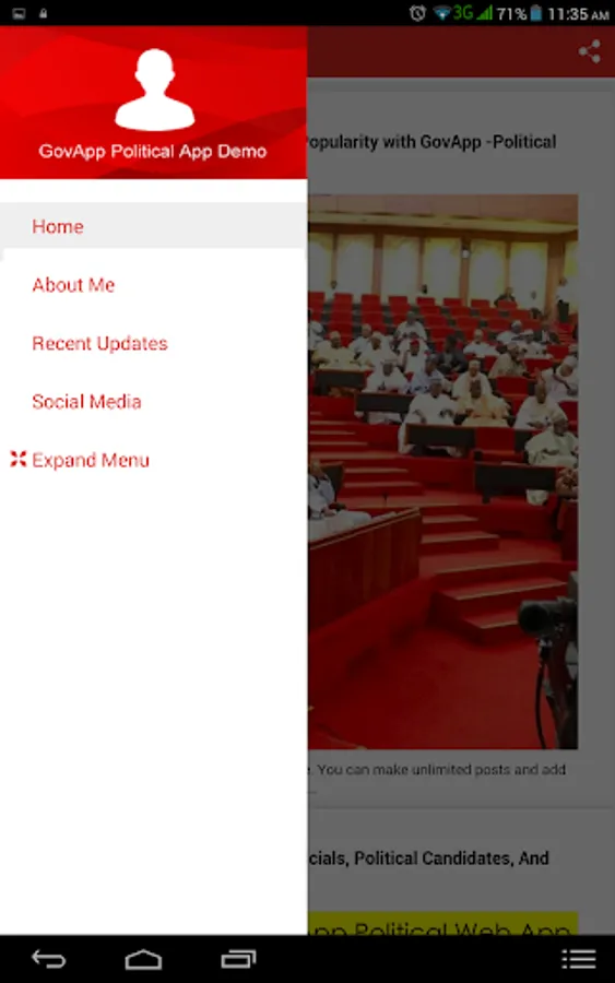 Welcome! This is your demo of the GovApp political mobile app.