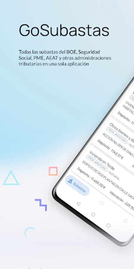 GoSubastas is the BOE and Social Security auctions application that allows you to access all the information in real time in a simple and intuitive way.