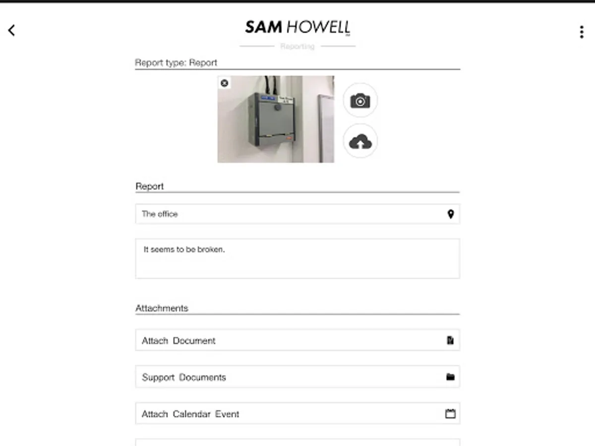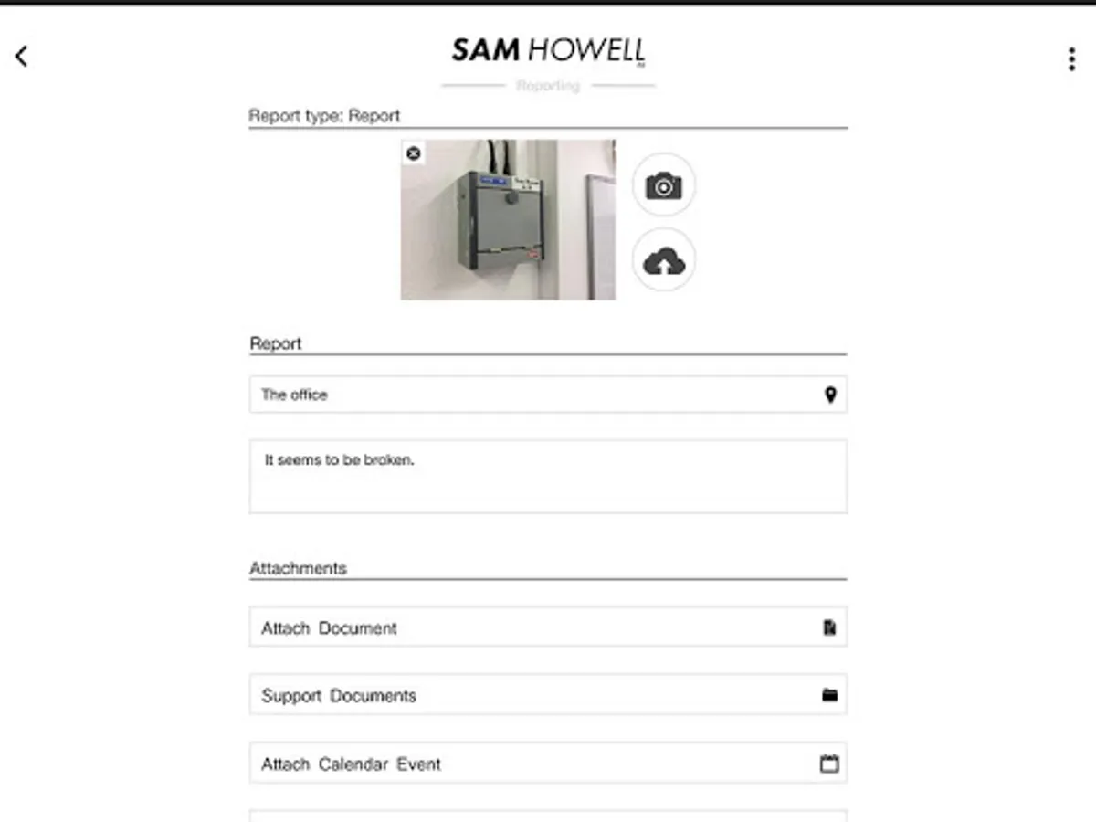Once logged in you can begin writing your report by tapping the report button. The app will display a user friendly interface that will allow you to record all of the notes from your meeting. It will also allow you to add extra attachments such as videos, audio clips and calendar attachments.