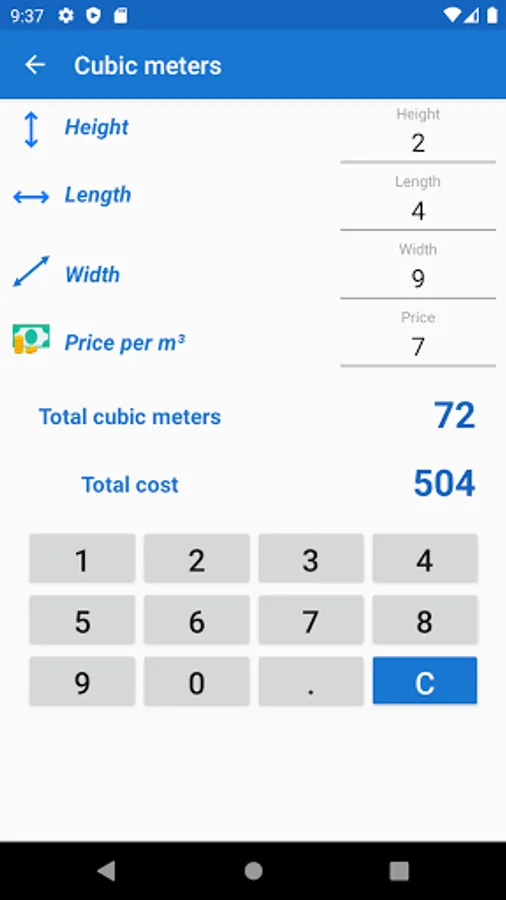 A perfect calculator if you want to calculate the area of a surface like a room, garden of any place or the volume of a space like a box or any cuboid shape.
