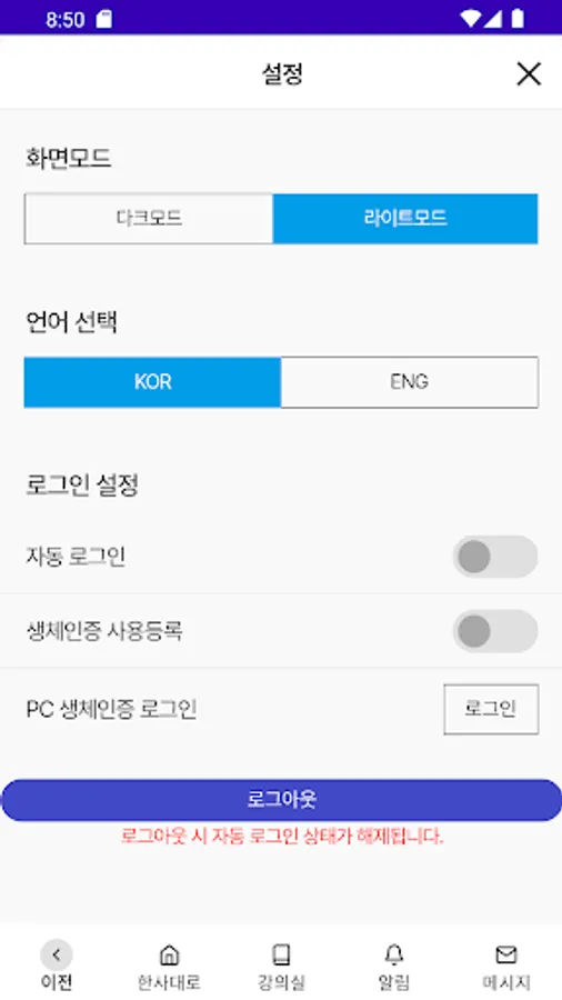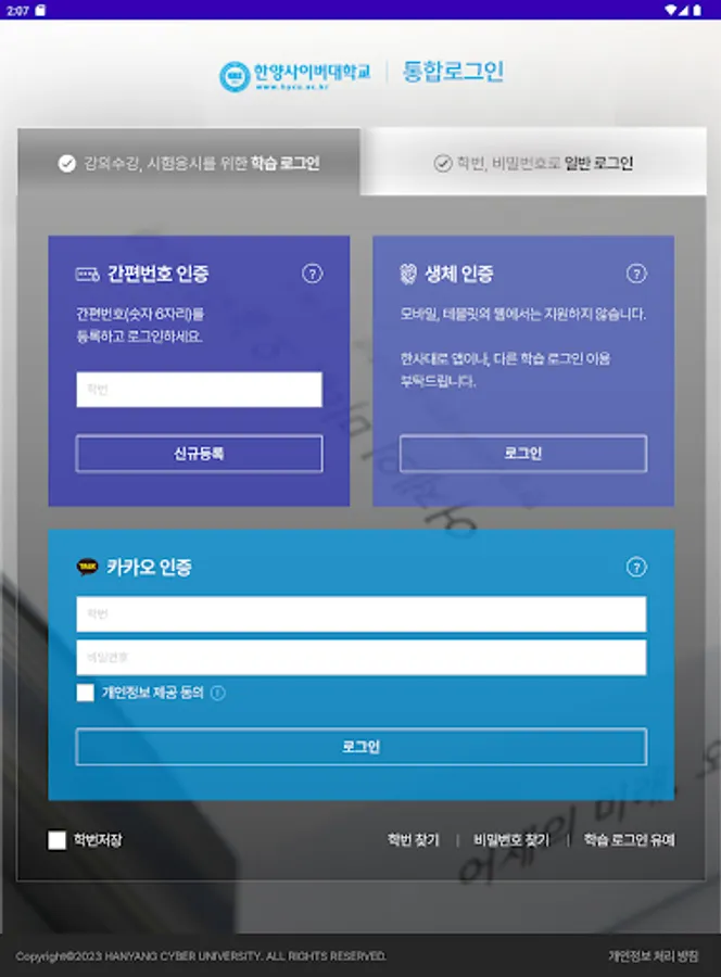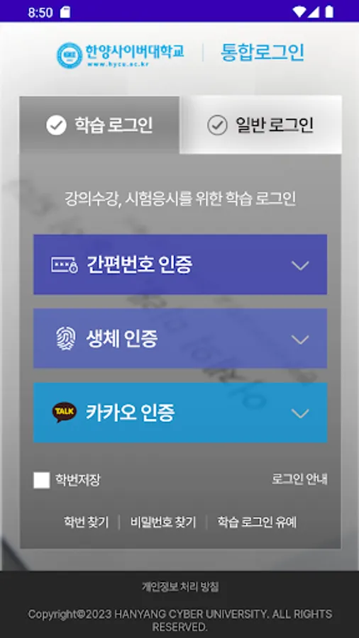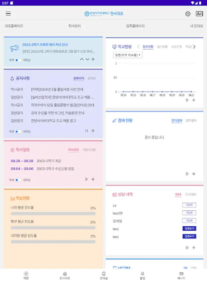 Hansa-daero is a mobile app developed by Hanyang Cyber University and provides functions for the convenience of taking lectures and school life.