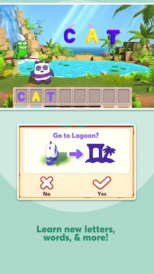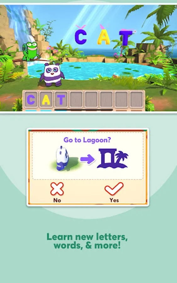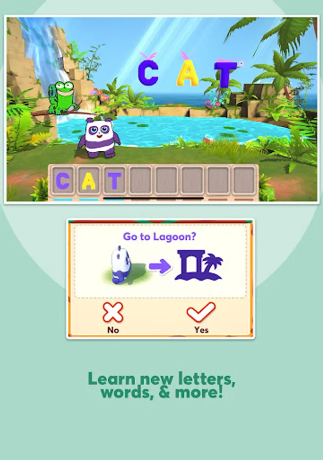 Lagoon Area - Let’s go to the Lagoon! Explore letter-sound correspondences and spell any word up to 8 letters long! Supports vocabulary development by revealing pictures for many common words.