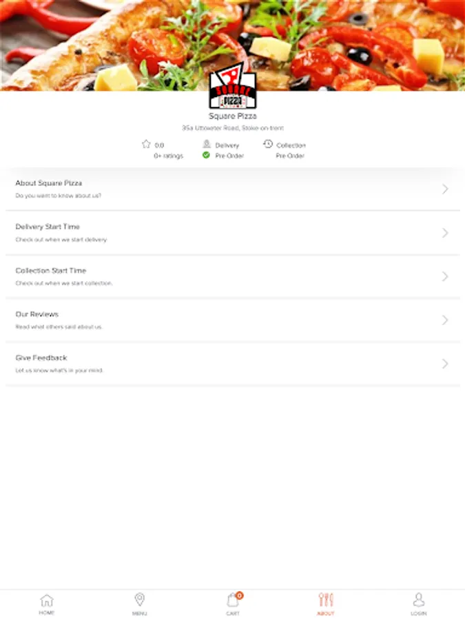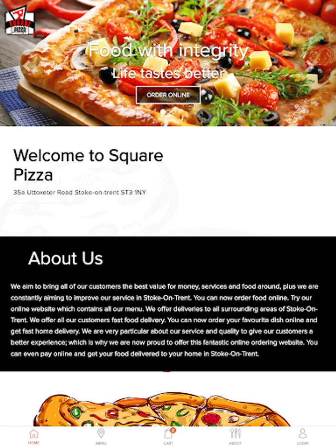 We're also available for ordering on https://squarepizzas.co.uk/storemenu and also on https://kuick.com/order/square-pizza