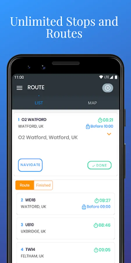 - ETAs for every stop, so you can tell customers exactly when you are due to arrive.