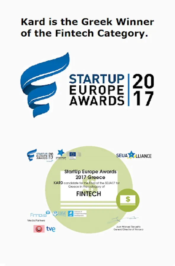 Kard was the best fintech startup in Greece and finalist of Startup Europe Awards 2017 in the fintech category.