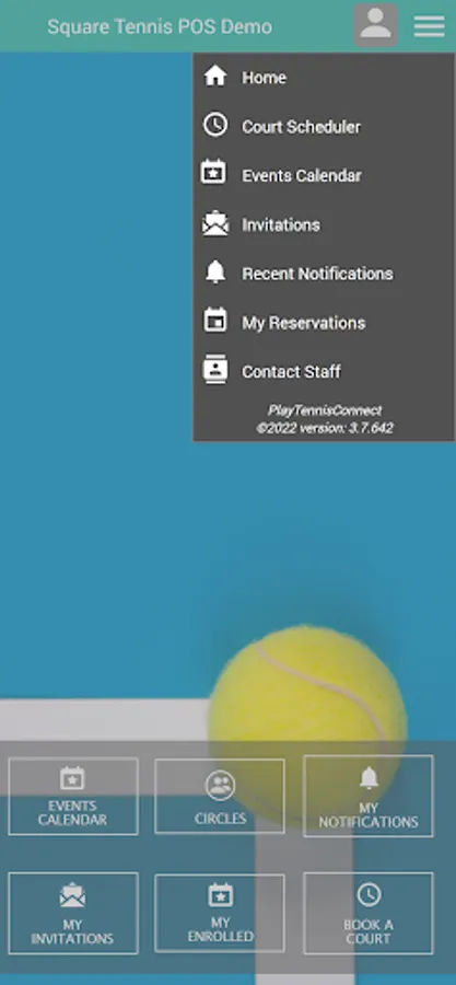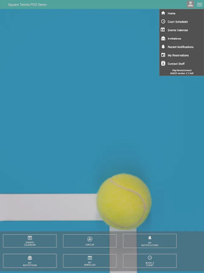 The Square Tennis POS Demo mobile app for court reservations, event enrollments, payments and more!