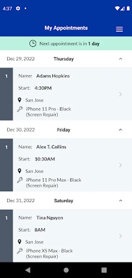 1. View upcoming SquareTrade service appointments