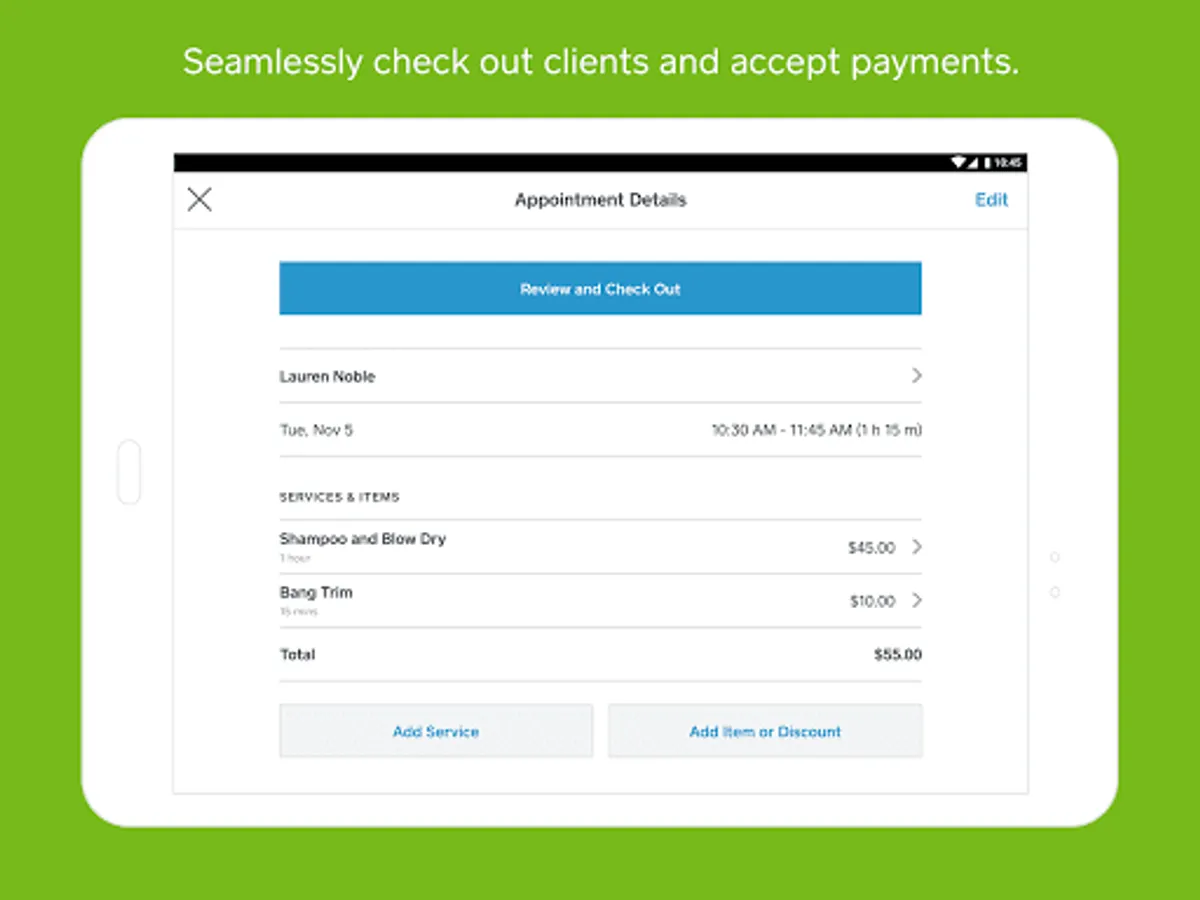 This is more than just a calendar. Square Appointments is powerful appointment scheduling, a point of sale, and payment processing—all in one place.