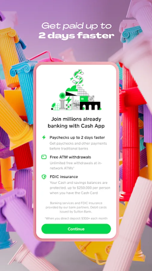 Deposit paychecks, tax returns, unemployment benefits, government stimulus payouts and more directly into your Cash App balance using your account and routing number. Receive deposits up to two days earlier than is standard with most banks. Use the same account and routing information to pay bills using your balance. Cash App is a financial services platform, not a bank. Banking services provided by Cash App’s bank partner(s).