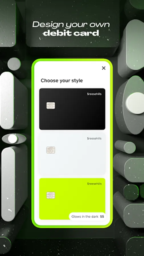 Order your Cash App Card (a customizable Visa debit card) directly from Cash App. You’ll be able to instantly make purchases using your virtual card. We’ll also mail you your physical laser-etched Cash App Card so you can swipe, dip, or tap at any merchant. Debit card issued by Cash App’s bank partner(s). ATM withdrawal fees may apply.