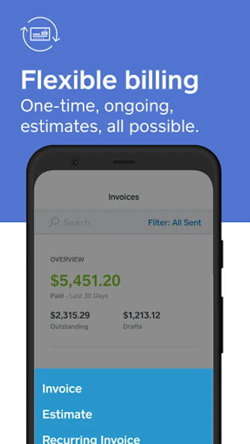 ► Send professional invoices and estimates in three simple steps: just enter your customer’s email, the amount, and hit send invoice.