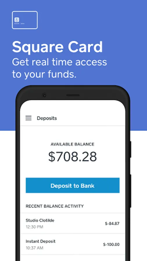 ► Access your funds in real-time with the Square Card or transfer instantly into your bank account for 1.75% of the deposit amount. Next business day deposits come standard.