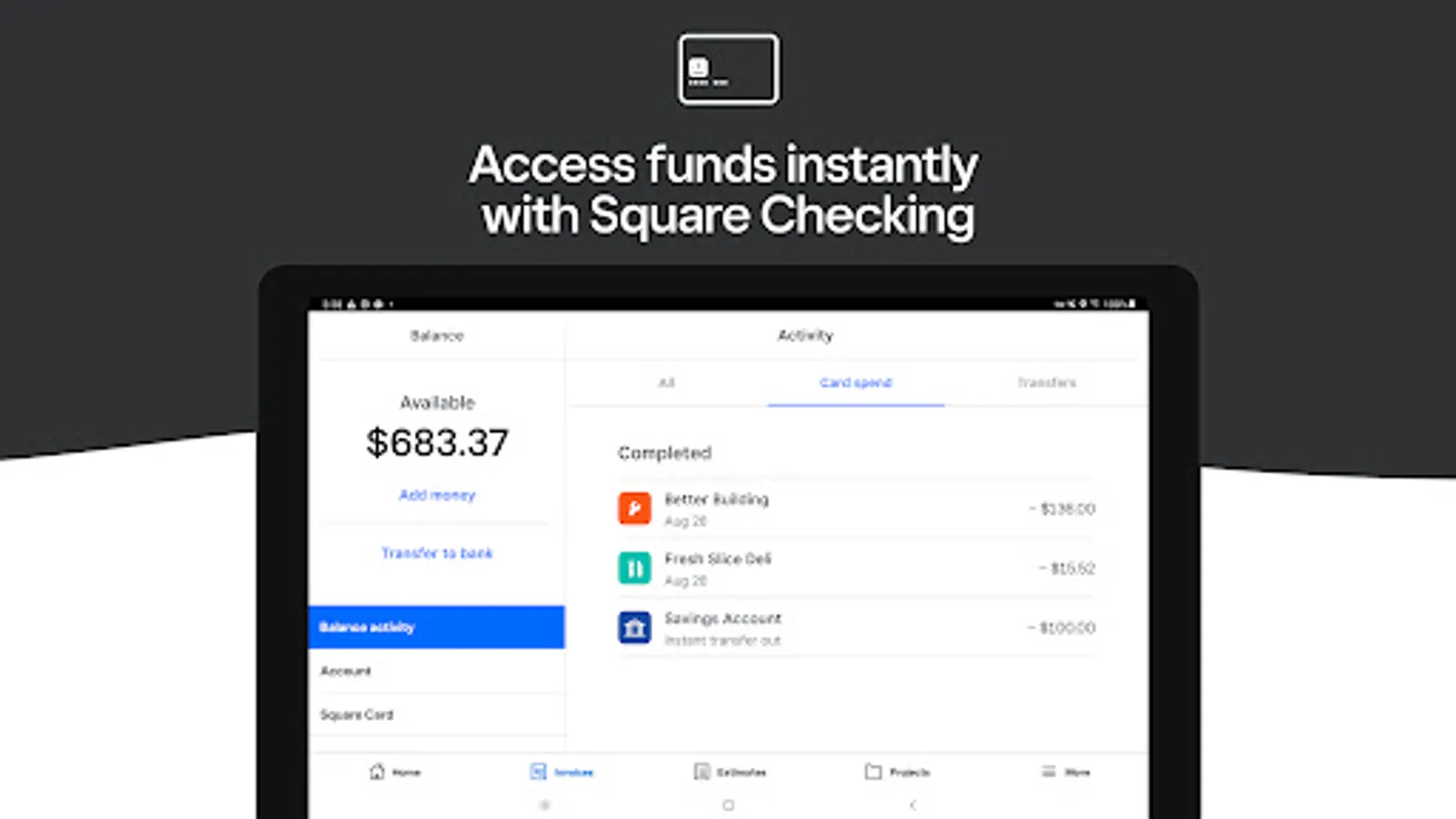 Access your funds in real-time with the Square Card or instantly transfer funds to your bank account for 1.75% of the deposit amount. Next business day deposits come standard.