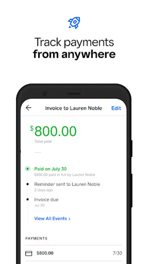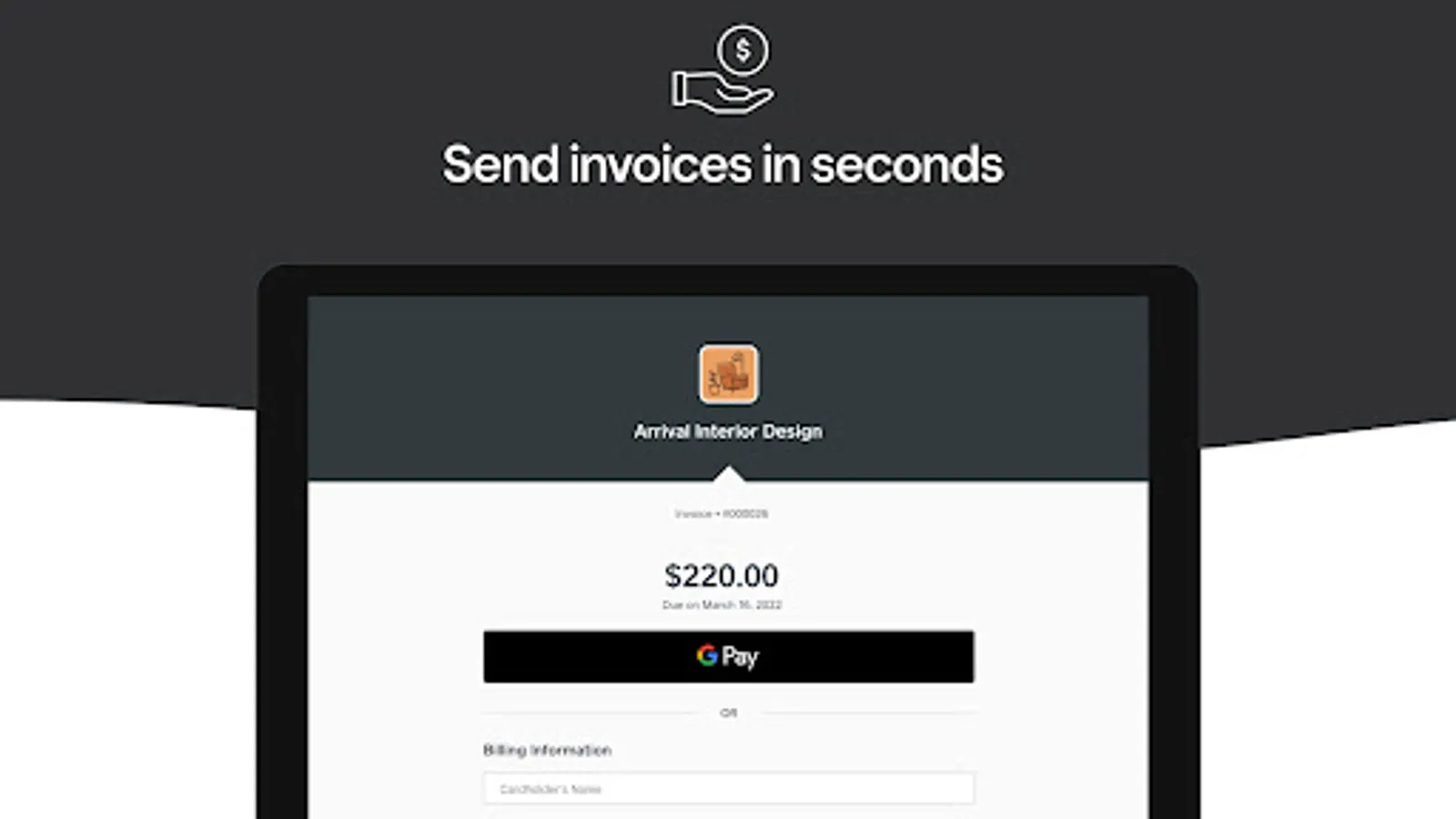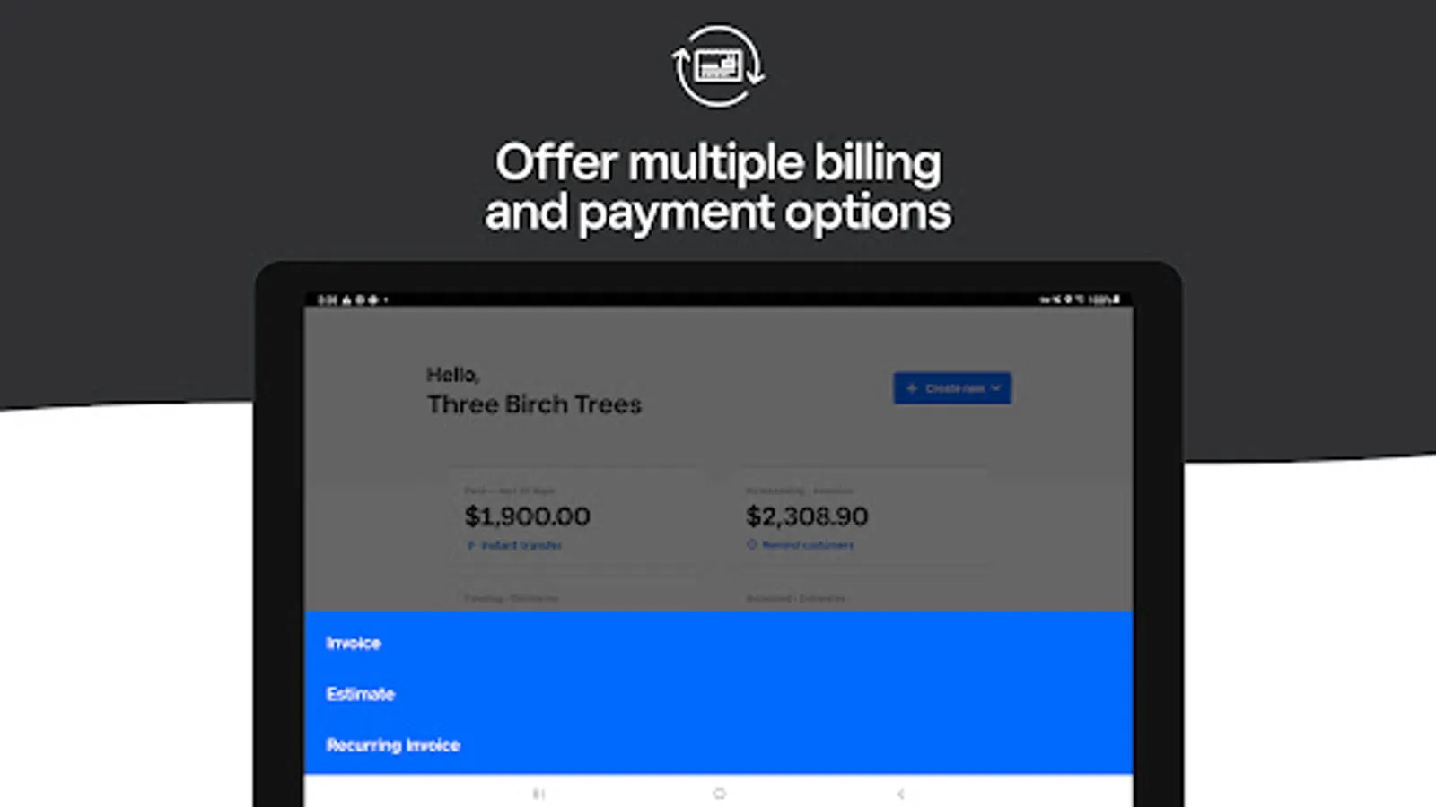 The free Square Invoices app is your go-to invoice maker that lets you get paid from anywhere. With the app, you can send bills and estimates, track payment status, set auto-reminders for upcoming invoices, monitor your cash flow, and much more with ease. There are no monthly fees or commitments.