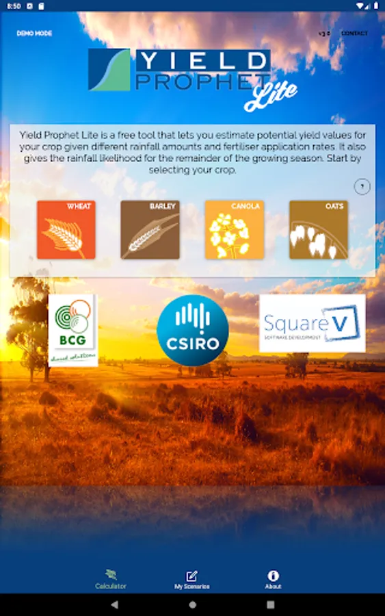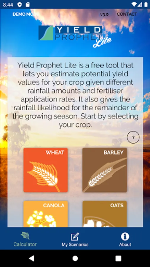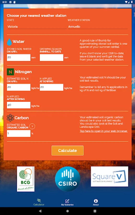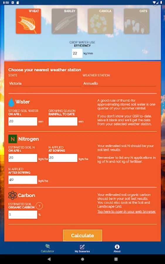 You can specify your crop from wheat, barley, canola or oats, choose your closest Bureau of Meteorology weather station, and input some quick details about your rainfall, nitrogen applications and soil organic carbon. Yield Prophet Lite will calculate a range of yield potentials and nitrogen-limited yield potentials for your crop, and tell you the likelihood of different future rainfall amounts for the rest of the growing season based on the POAMA/ACCESS model.