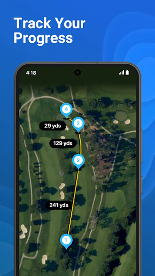 18Birdies app tracks range finder gps distances in yards or meters for any golf course worldwide.