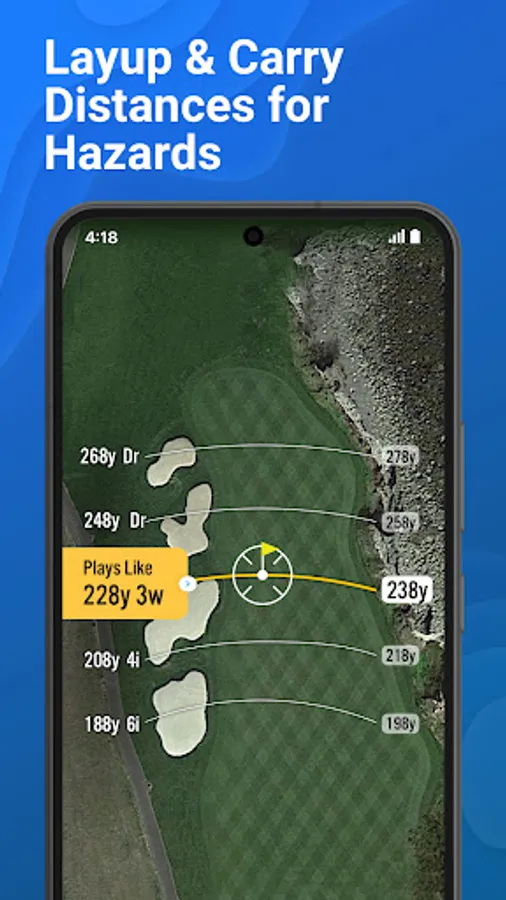 DISTANCE ARCS: Take our range finder to the next level. See the exact gps distance to the flag for every shot on every hole. Includes distances to any bunker or hazard on the course.