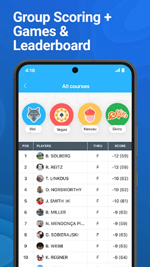 18Birdies is the best free golf GPS yardage range finder & golf scorecard app for Android & Wear OS. Join millions of golfers using 18Birdies to improve their game. Lower your handicap with the help of our breakthrough golf gps and round performance tracker with digital golf scorecard and fun games and stats. Play in tournaments, get swing tips from our golf swing analyzer and track games you play with friends on the course.