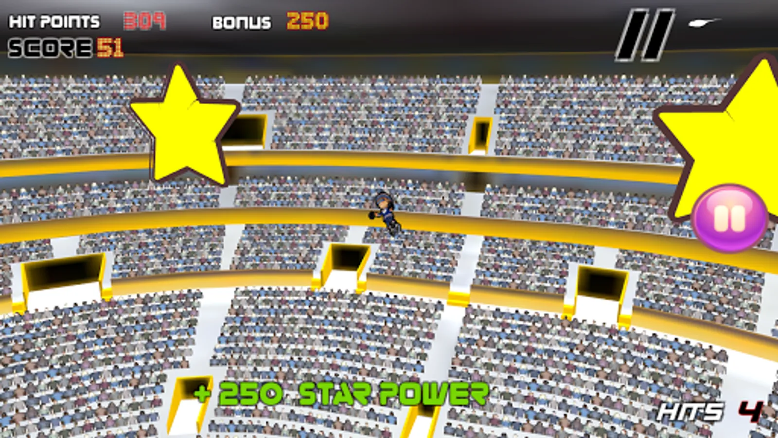 To control your player simply tilt your device from side to side, use one of the power hits by timing the button press to increase hitting power. You have five attempts to get as many points as possible.