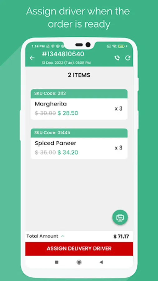 f. On Confirmation of the Order, assign it to the Delivery driver for delivery